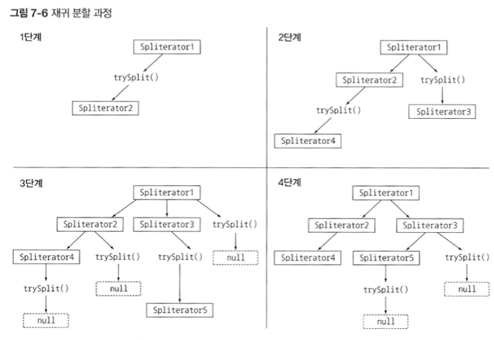 - Spliterator를 쪼개서 또다른 Spliterator를 생성하는 메소드 (아래그림 참조)