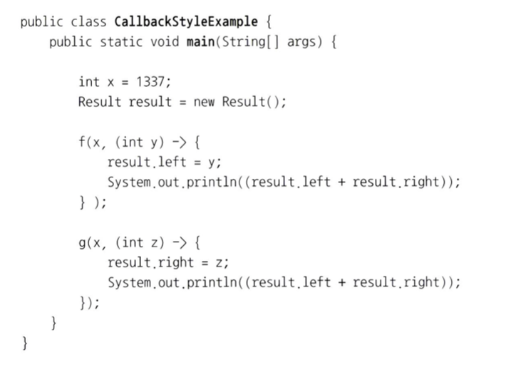f, g 메소드 자체를 바꿔서, 콜백을 이용하는 것이다.